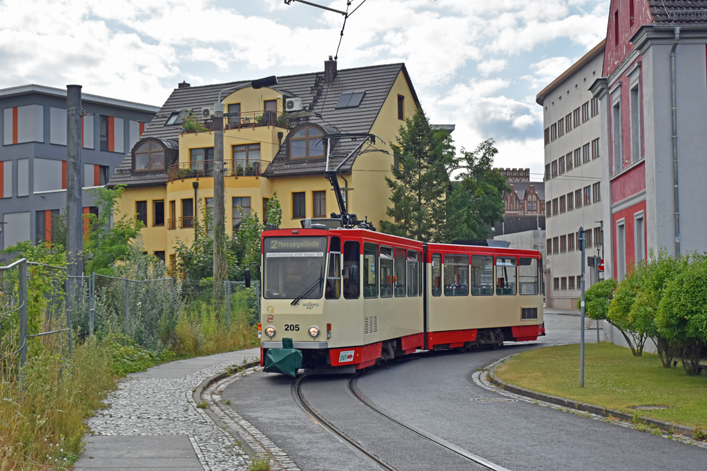 212+205 als Doppeltraktion in der Ernst-Thälmann-Straße. |