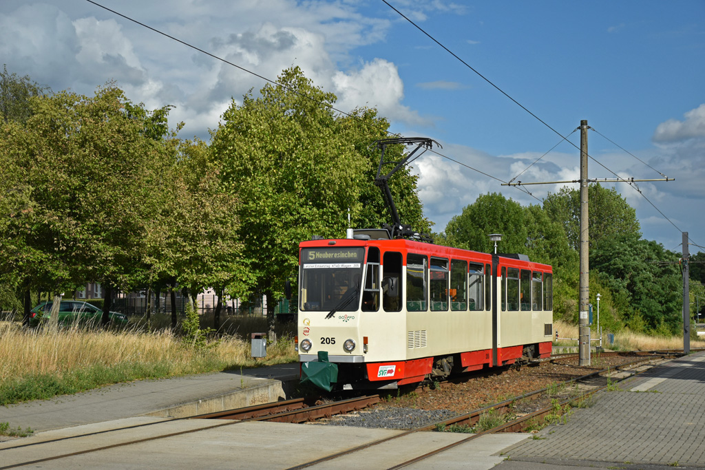 205 als Linie 1 an der Ausstiegshaltestelle Lebuser Vorstadt und befährt