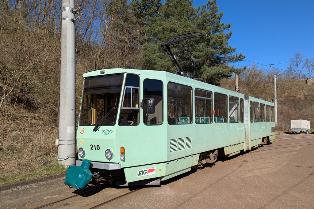 18.03.2025 - Tatrawagen 210 zeigt sich auf dem Umfahrungsgleis 1 auf dem SVF