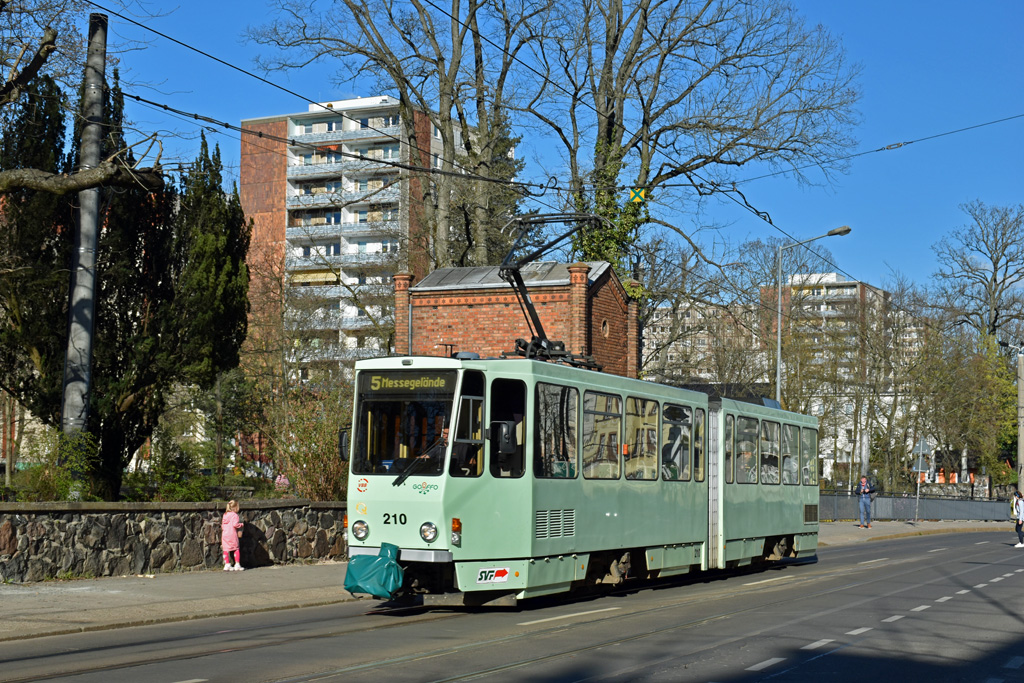 Wagen 210 an der Kopernikusstraße auf die Abfahrt Richtung Markendorf am