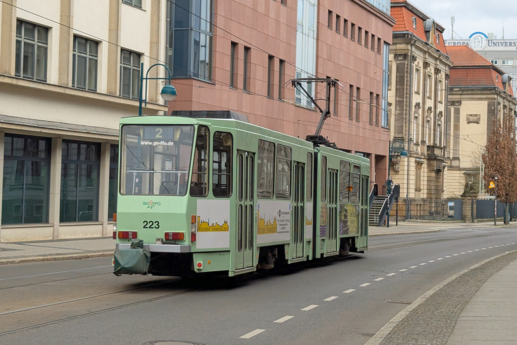 30.03.2025 - Tatrawagen 223 wird gleich von der Logenstr. als Linie 2 in die