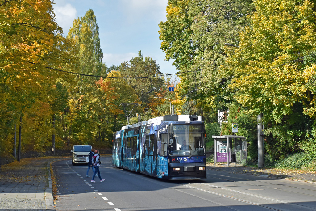 Am 02.12.2021 hat der Niederflurwagen 306 gerade die Haltestelle Stadion