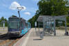 Der Niederflurwagen 306 fährt am 01.08.2022 auf der umgeleiteten Linie 4 von