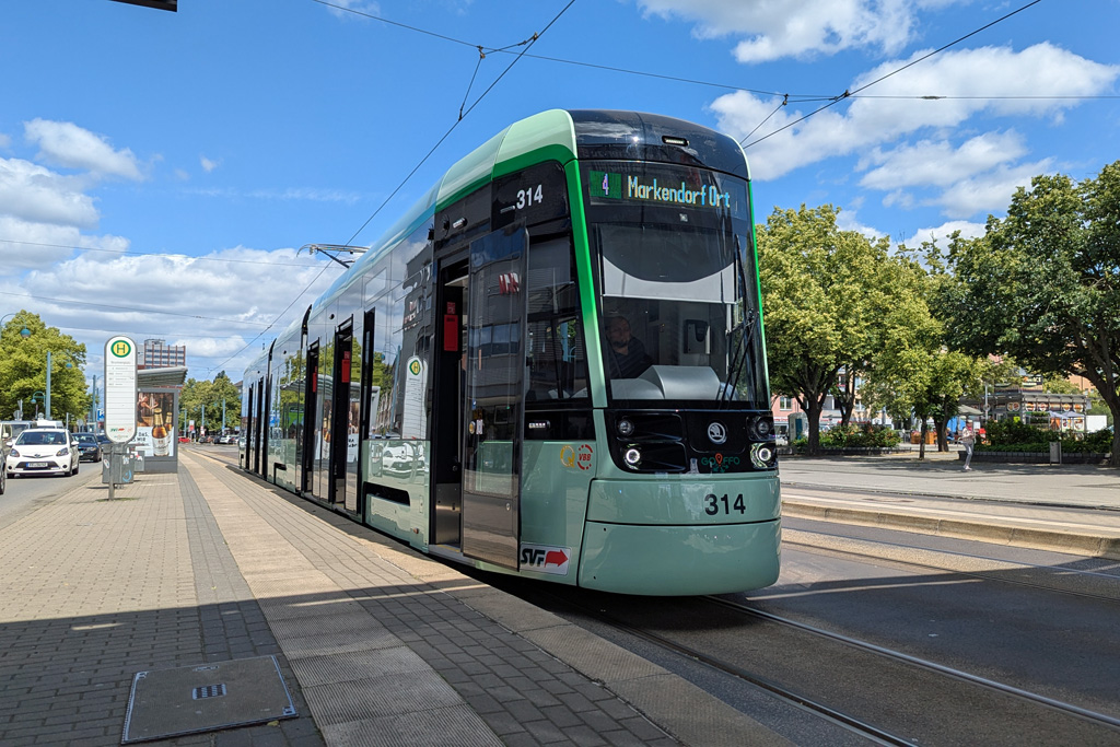 19.06.2025 - Wagen 314 bedient als Linie 4 gerade auf dem Weg nach