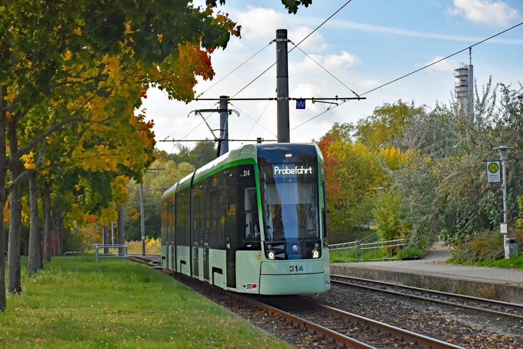 13.10.2025 - Der Škoda 46T Wagen 314 zeigt sich hier als Probefahrt