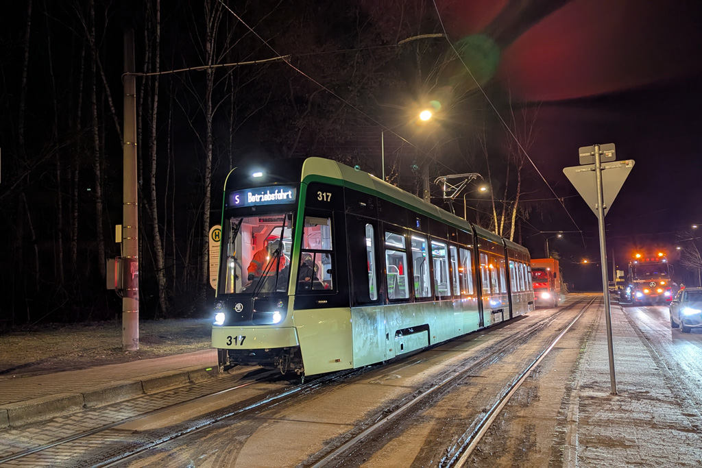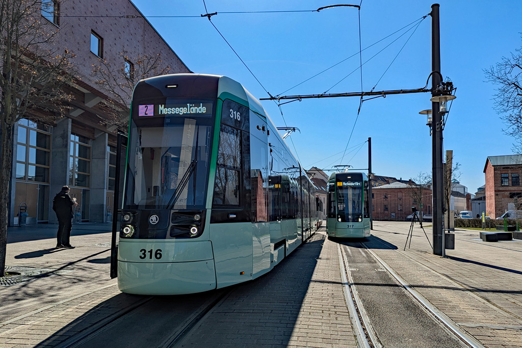 19.03.2025 - Die beiden Škodawagen 316 und 317 warten hier an der