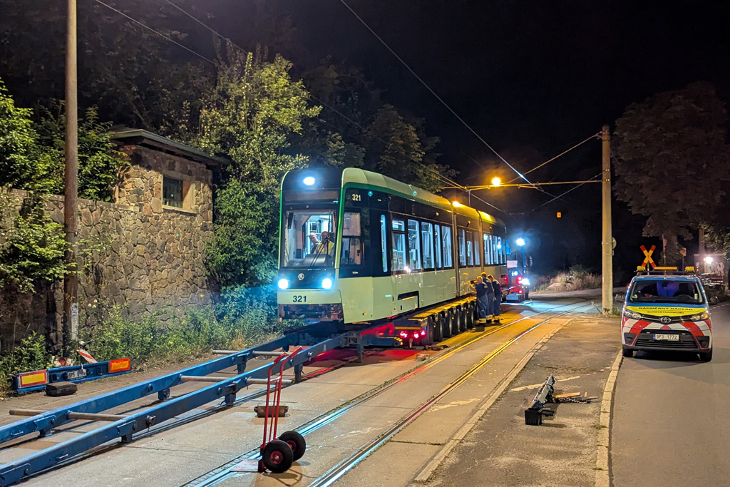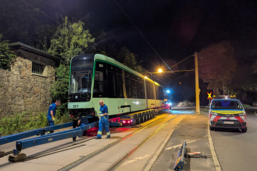 18.06.2025 - Škodawagen 321 ist kurz vor seiner Abladung an der