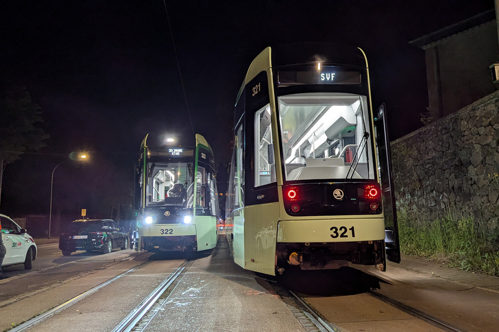 18.06.2025 - Die Škodawagen 322 und 321 stehen kurz nach ihrer