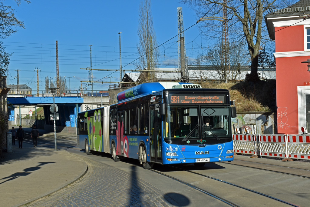 28.03.2024 - Gelenkbus FF O 547 fährt auf der Bahnhofstr. weiter in Richtung