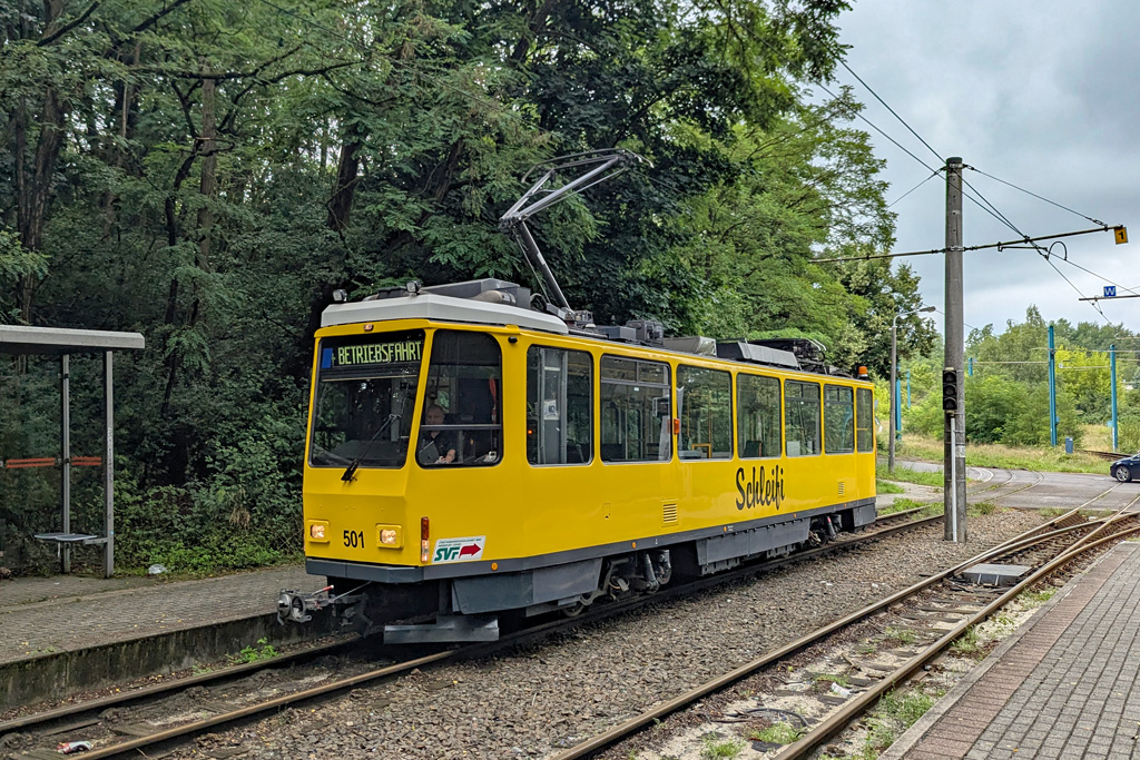 501 bei seiner Ankunft an der Einfahrt des Betriebshofes Neuberesinchen am